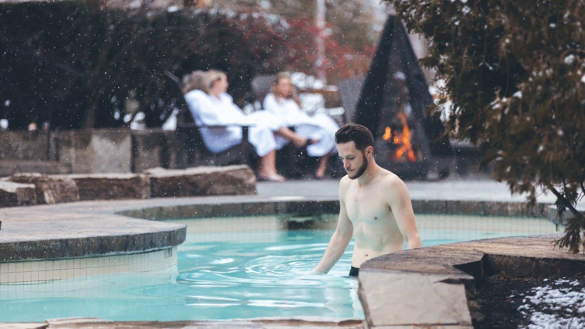 The Nordic waterfall cold plunge is the coldest installation of the Thermal Journey. When you immerse yourself, breathe consciously and with intention, from head to toe. The initial shock of the extreme cold may take your breath away, resist your instinct to exit by focusing on staying submerged for a few seconds to a few minutes.