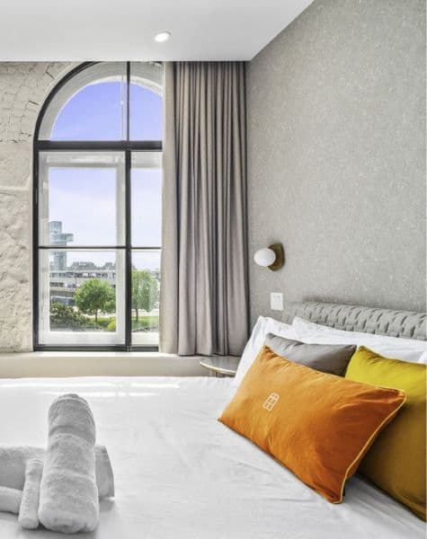Just steps away from Scandinave Spa Vieux-Montréal, Arcadia offers 14 rooms, including a suite, that harmoniously combine modern comfort and historic charm. Its typical 19th-century architecture, with its immense arched windows, offers spectacular views of the St. Lawrence River or the emblematic cobblestone streets of Old Montreal. The vast lobby, with its refined design, welcomes you into a vibrant atmosphere, where French elegance merges with Montreal creativity.