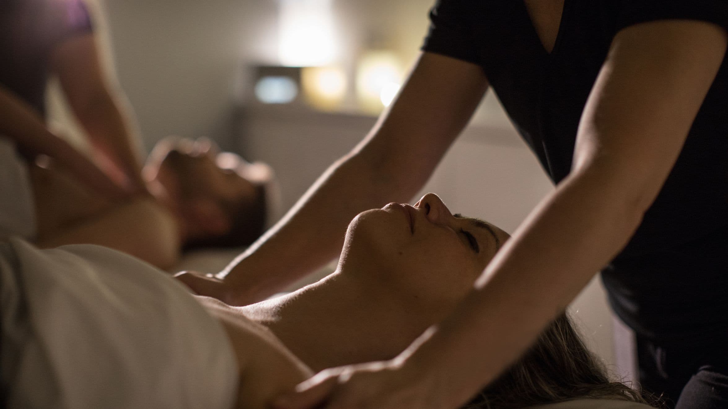 Share the relaxation experience in a massage room designed for two, you and your partner will have the complete and undivided attention of two massage therapists. An additional fee of $5 per person applies. Select Couple when you book online. All you need to do is choose the type of massage you wish to get. Limited availabilities. To book a prenatal duo massage, please contact us by phone.